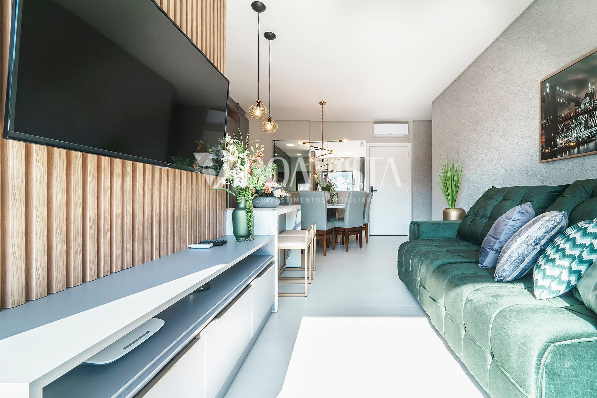 Este confortável apartamento tem capacidade para 06 hospedes e dispõe de sala de estar e sala de jantar, cozinha em conceito aberto, sacada com churrasqueira, banheiro social e duas suítes, um lavabo, e todos os ambientes são climatizados. Cozinha e churrasqueira equipadas com utensílios para sua estadia.