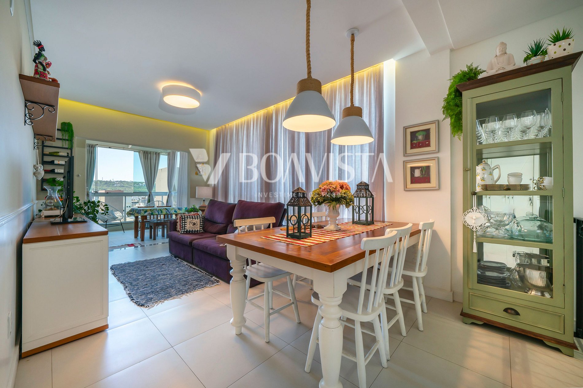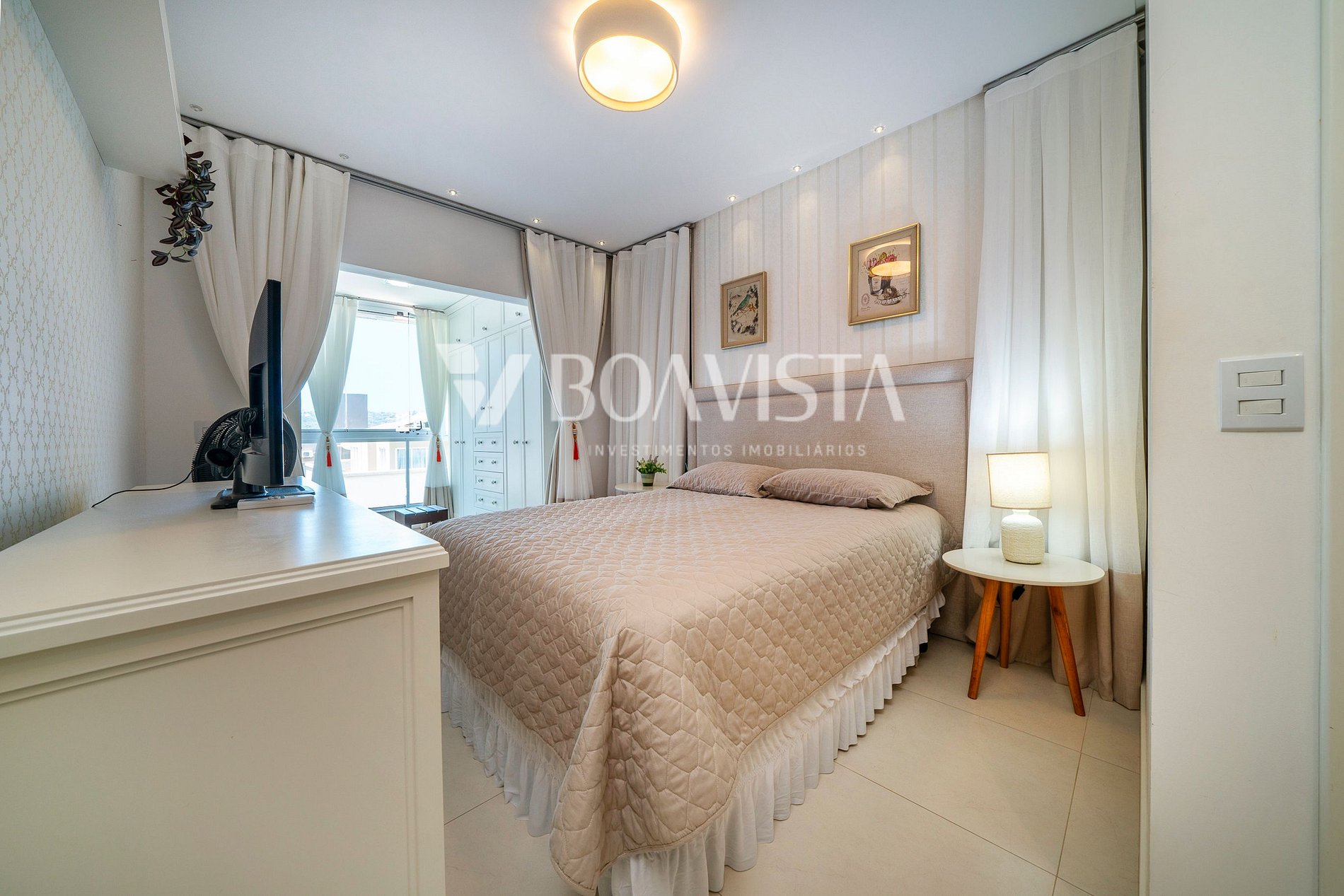 Apartamento com ótima distribuição de espaço e mobília de qualidade, com todos os quartos e sala de estar climatizados.